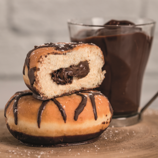 DONA HORNEADA DE CHOCOLATE RELLENO DE SALSA DE FRAMBUESA