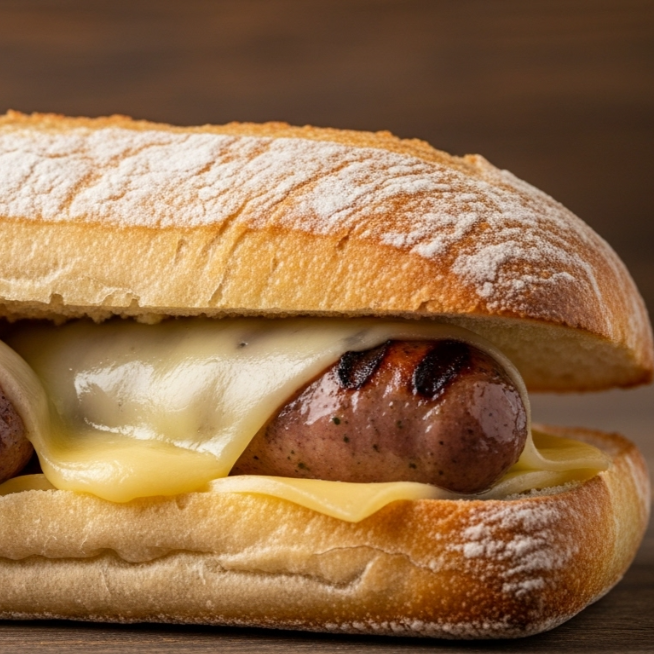 CHAPATA CON SALCHICHA DE RES, SALSA DE ALBAHACA CON QUESO PARMESANO