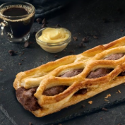PASTA DE HOLDRE EN FORMA DE MALLA CON CHOCOLATE Y PEPITAS DE AVELLANA