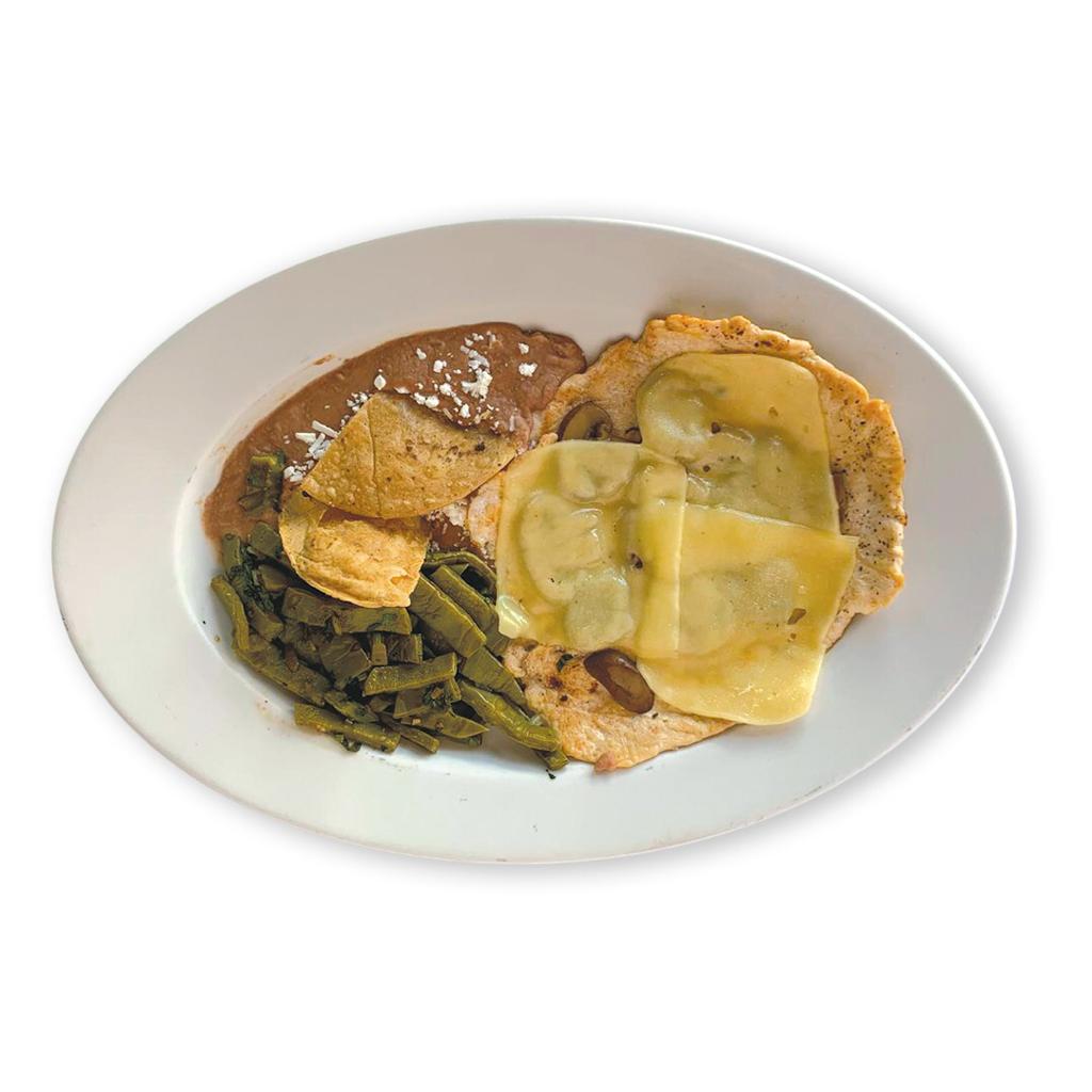 Una de las especialidades de la Casa. Un poco de todo, bistec, pechuga asada, huevo, longaniza, extra crema y queso panela.