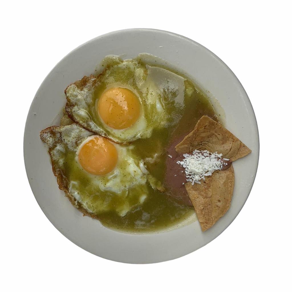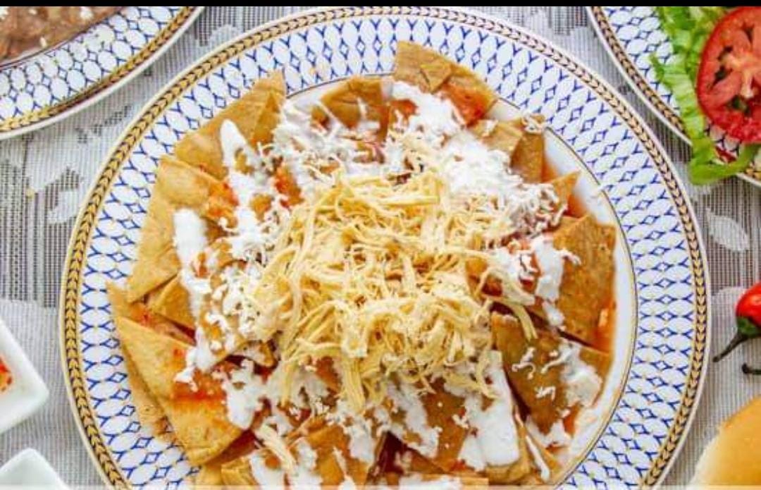 Deliciosos chilaquiles, preparados con salsa de la Casa. Acompañados de crema, queso panela y pan.