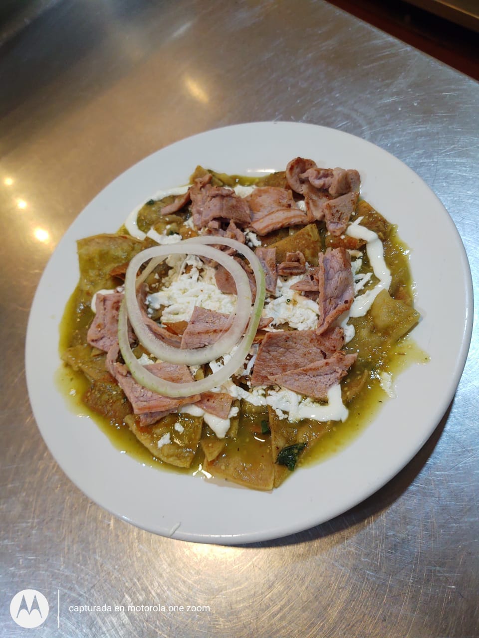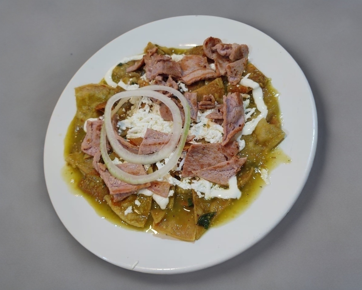 Chilaquiles de la Casa personal. Deliciosos chilaquiles verdes o rojos, acompañados de lo tradicional (crema y queso panela) pero complementado con bisteck.