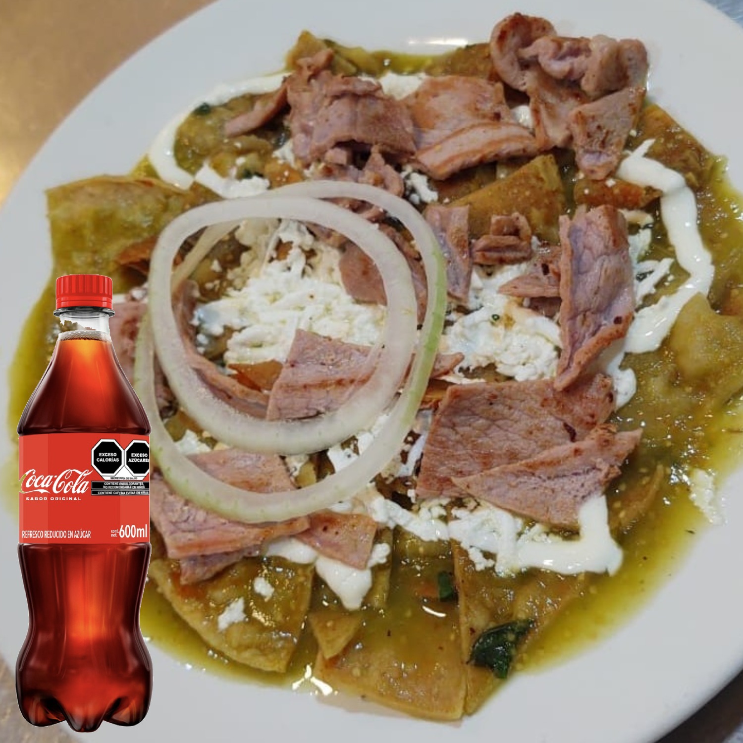 Refresco Coca Cola*1(600ml) + Chilaquiles "El Tanque"*1