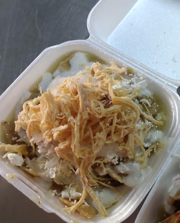 Individuales -Totopos de maíz con cebolla, crema y queso rallado, preparación a elección.(No lleva pollo ,foto de referencia en revisión )