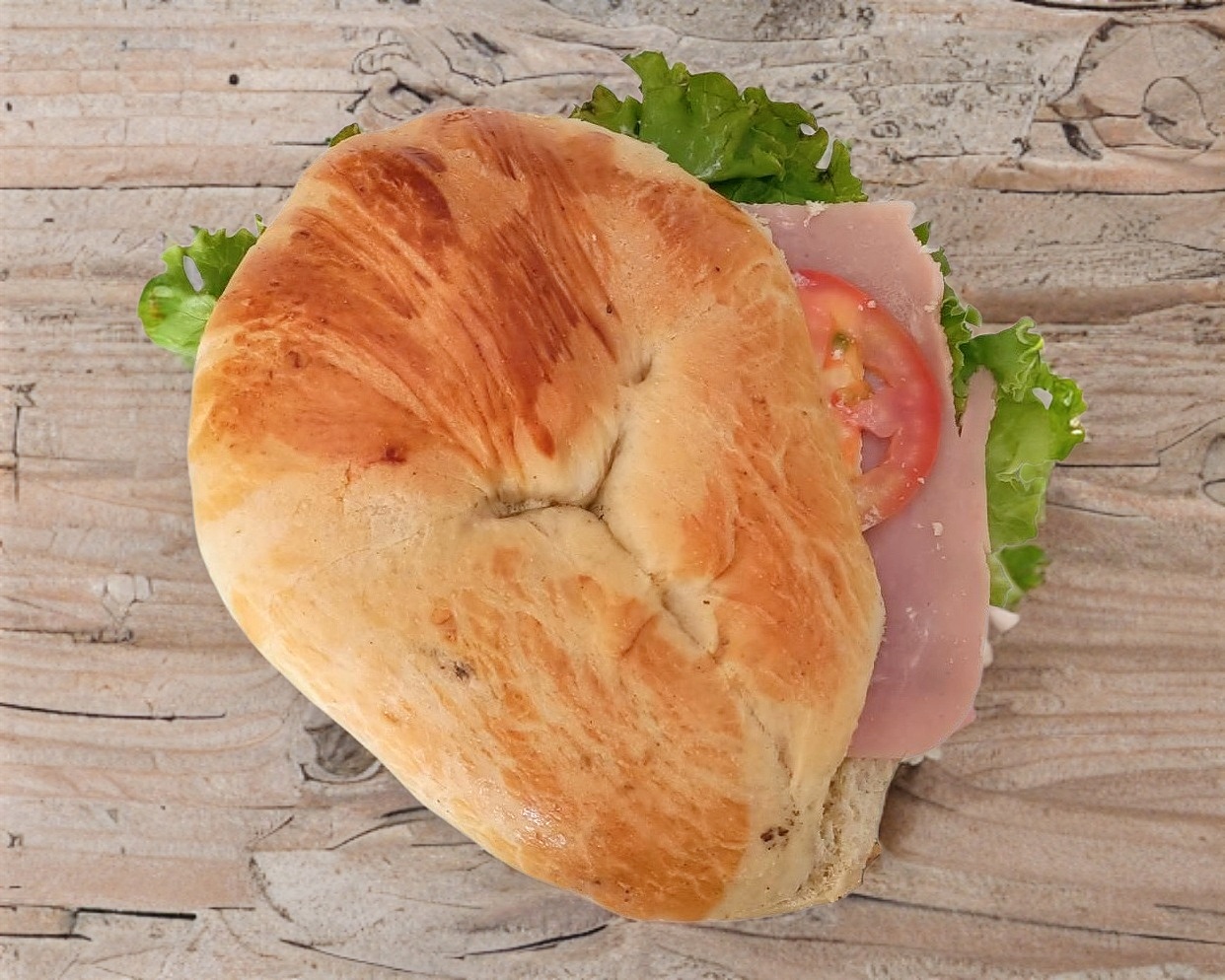 1 torta con mayonesa lechuga italiana, jamón queso amarillo, queso oaxaca, jitomate cebolla y chiles. (Porción personal)