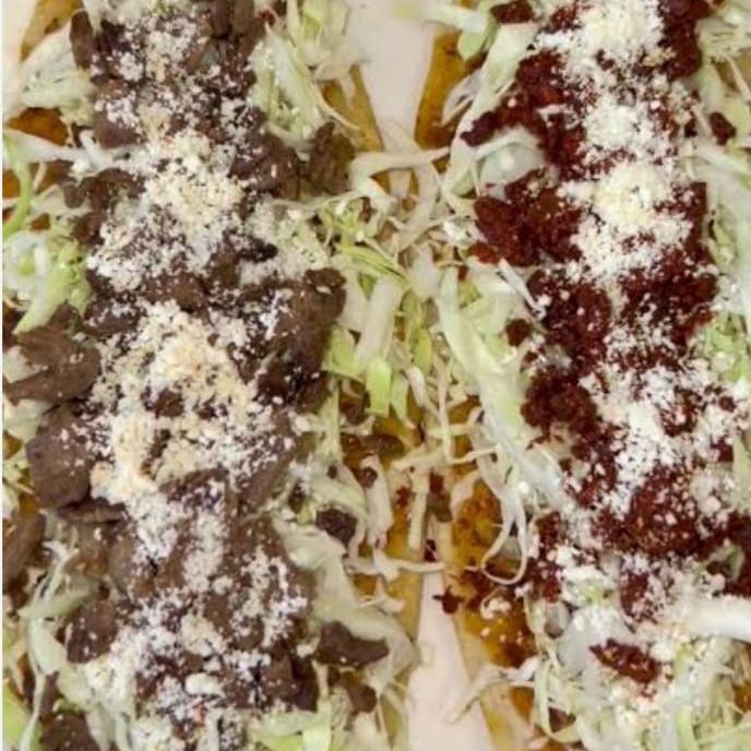 1 pieza tamaño 40cm tortilla de maiz con frijoles carne salsa crema queso rayado lechuga cebolla y nopal