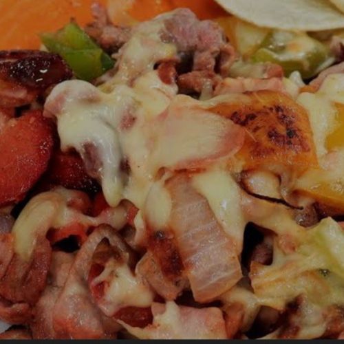 Morron cebolla tocino jamon bistec queso oaxaca