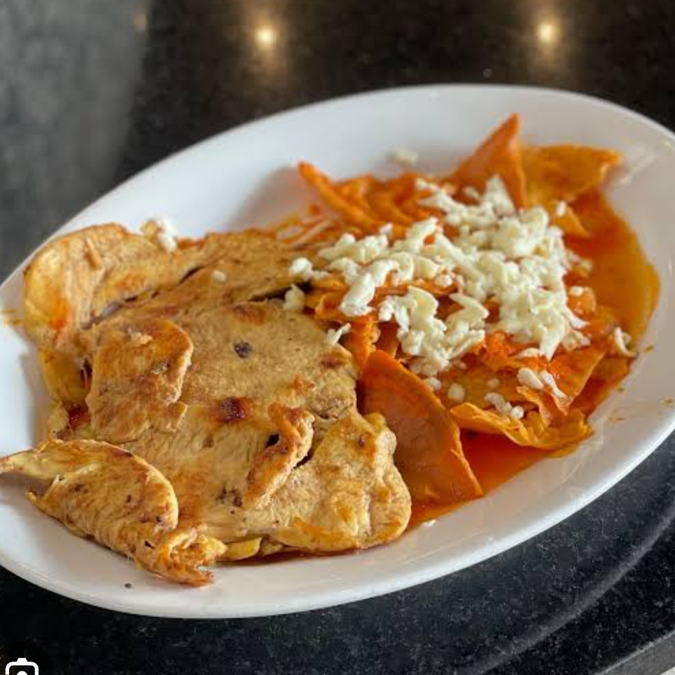 Chilaquiles Rojos con Pechuga Asada