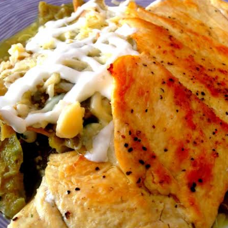 Chilaquiles verdes con pechuga asada