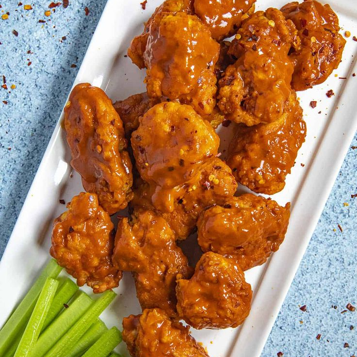 Boneless 110 gr (100%Pechuga de Pollo) montados de una cama de Lechuga acompañados de 1/3 de limón bañados en salsa Zarzamora-Chipotle