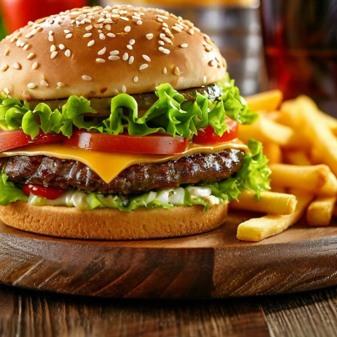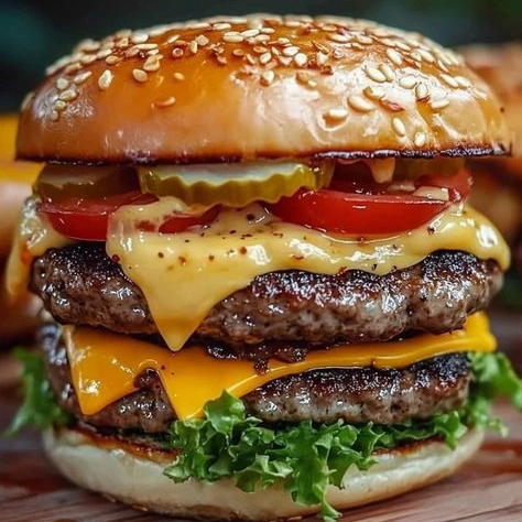 Doble Carne de Sirlon 150 g Cada carne, doble queso americano lechuga, jitomate, cebolla y aderezo.