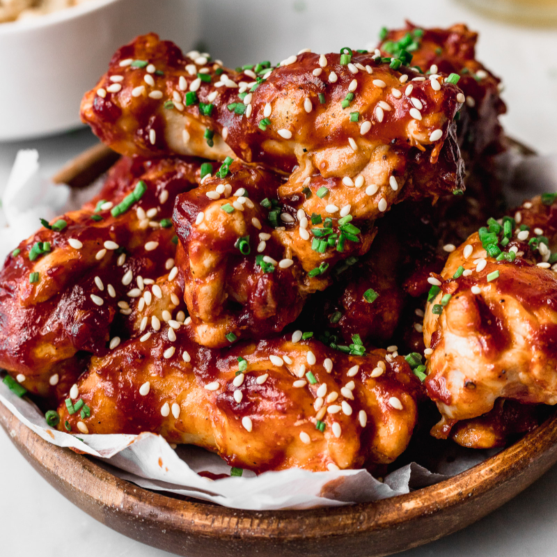 2 pz Sobre una cama de lechuga acompañados de un 1/3 de limón bañados con salsa de tu elección (BBQ mezquite, mango habanero, frambuesa morita, zarzamora chipotle, jamaica chipotle, cajún, skwinkles y pelón pelo rico). Pueden elegir hasta 2 diferentes).