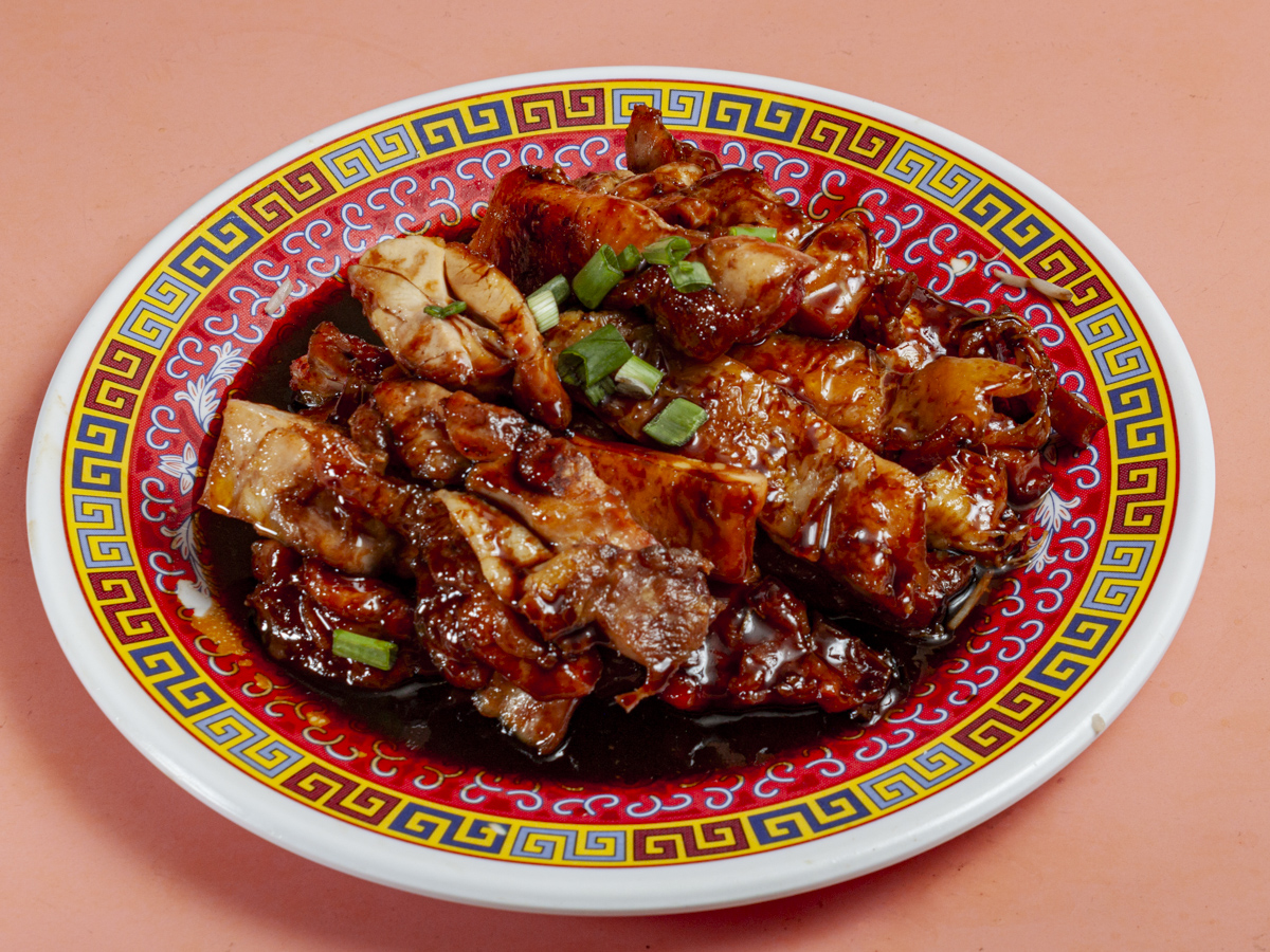 Pechuga de pollo planchada y bañada de salsa de soya preparada