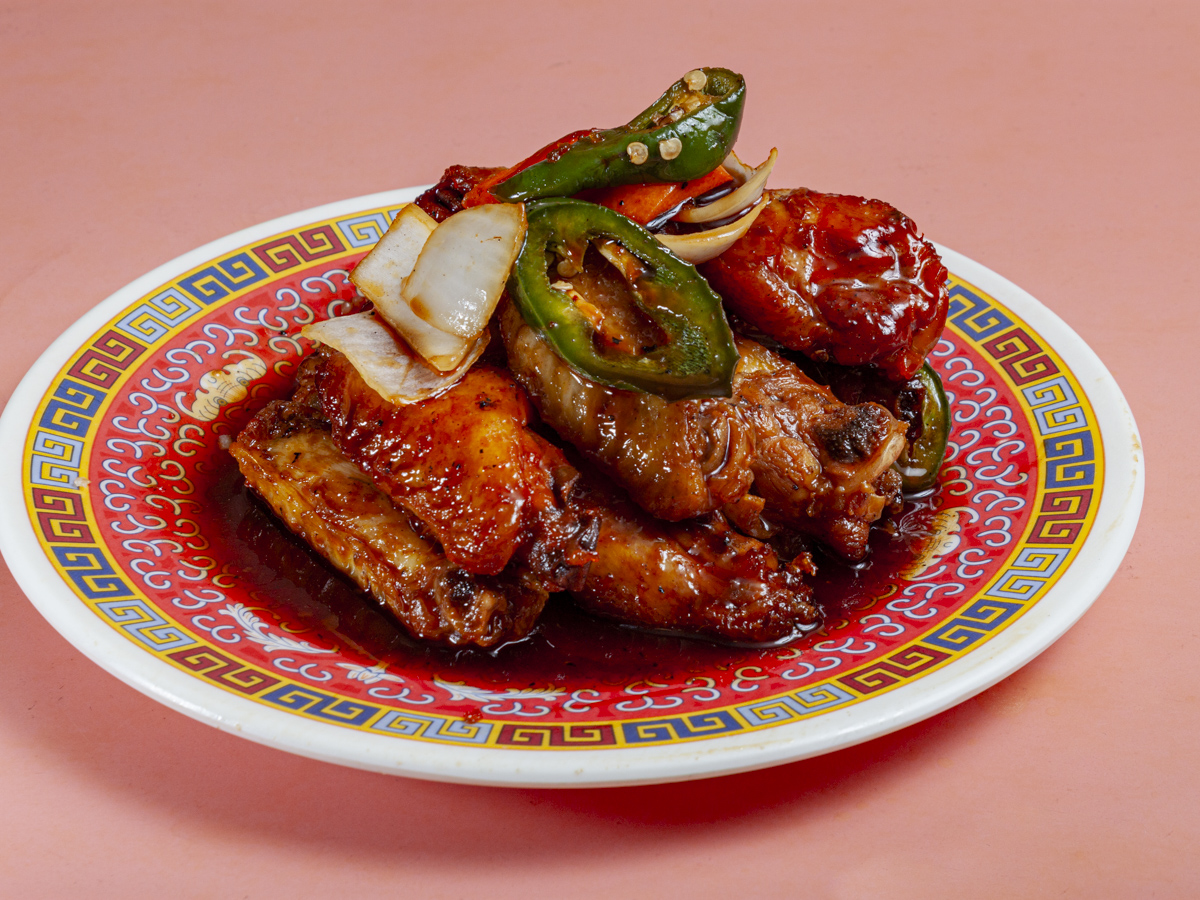 Alitas de pollo fritas y preparadas con salsa agridulce