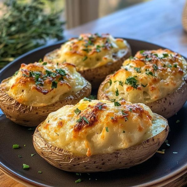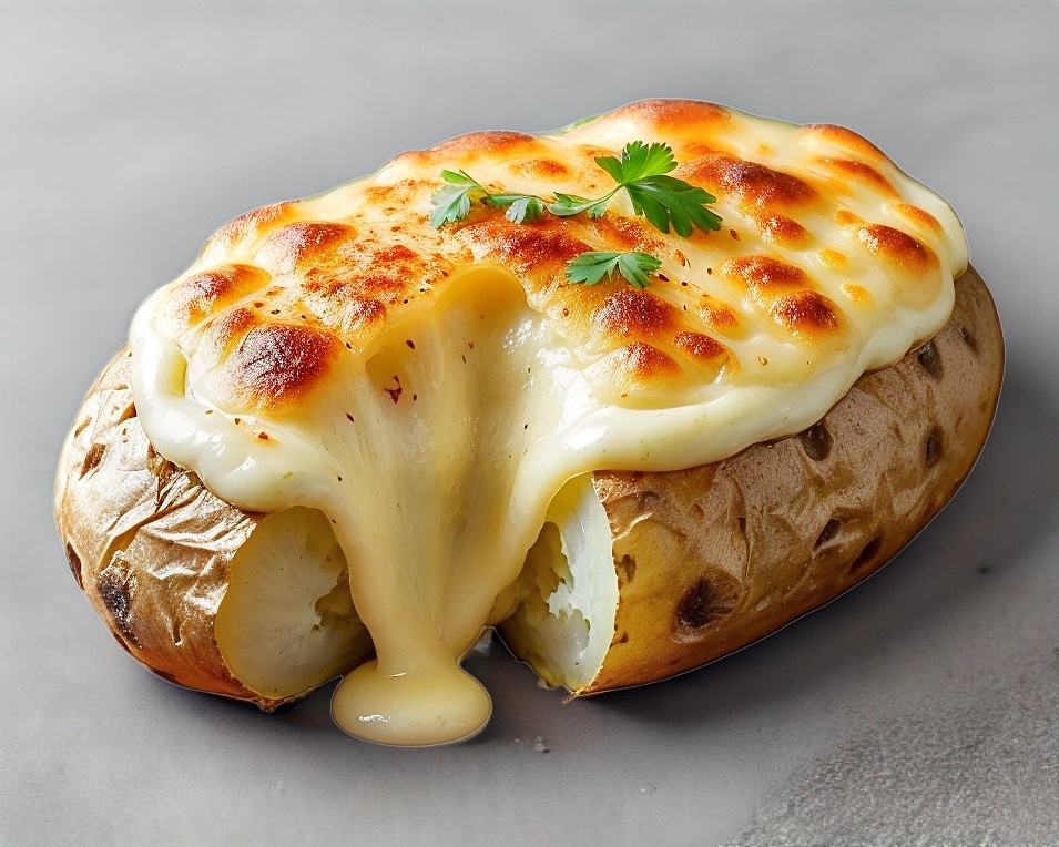 Papa de la más alta calidad al horno, con queso mozarella, havarti, tocino picado, y un toque de parmesano.