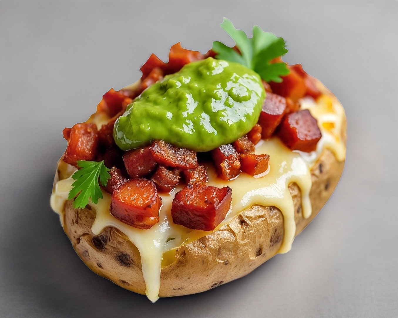 Papa de la más alta calidad al horno, rellena de arrachera picada, queso manchego, y un toque de aguacate.