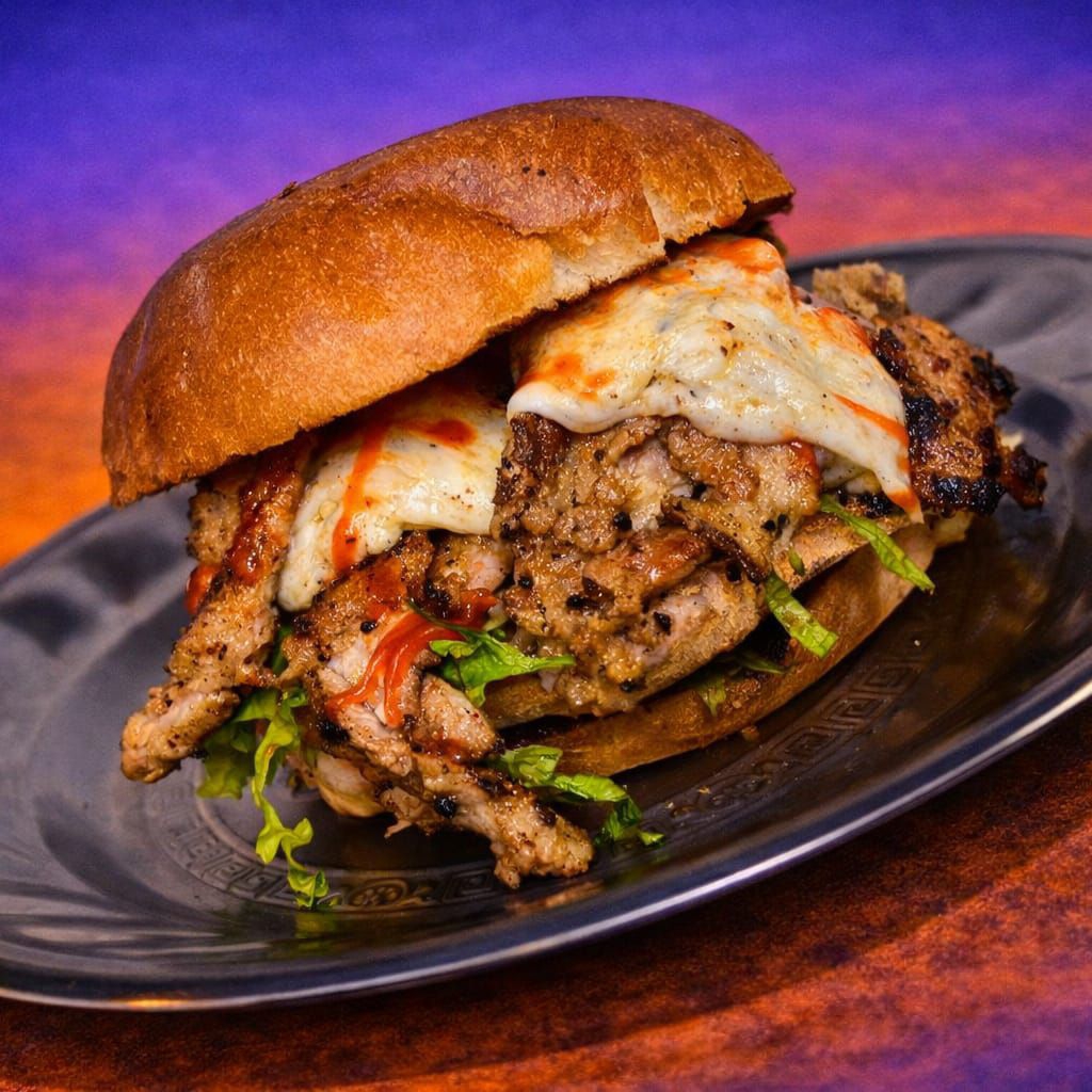 Bollo Artesanal, Milanesa Con Quesillo y Salsa Bbq