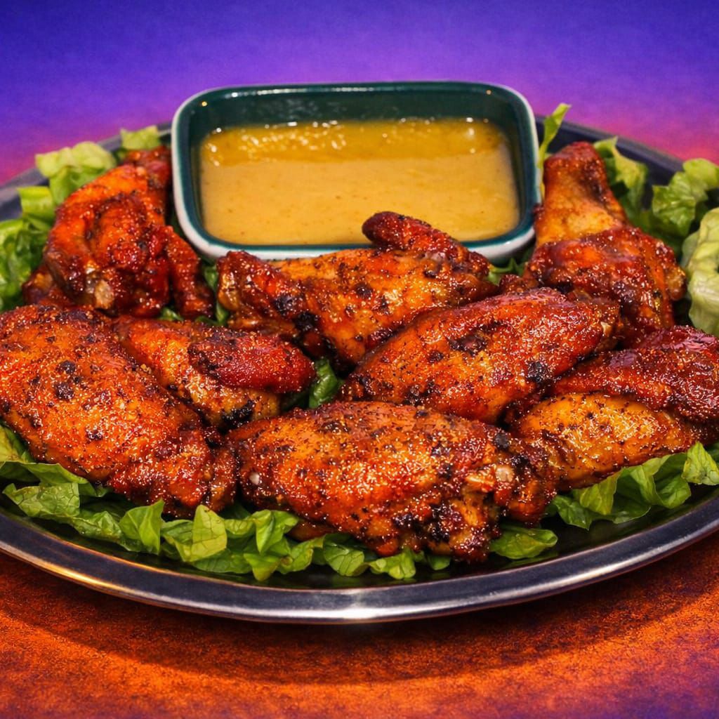 Nueve Alitas Bañadas En Salsa BBQ