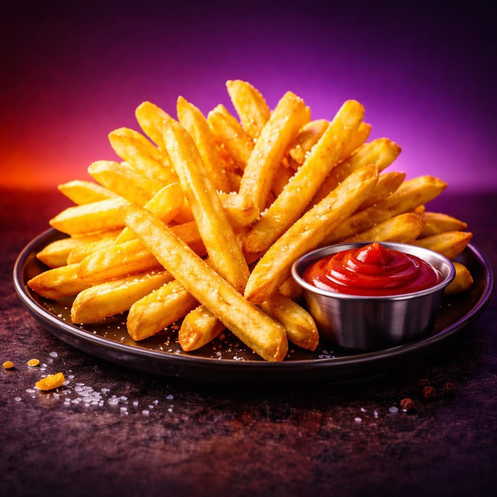 Papas A La Francesa Crujientes, Con Cobertura De Sal, Capsu, Salsa, Queso Liquido Y Queso Oaxaca