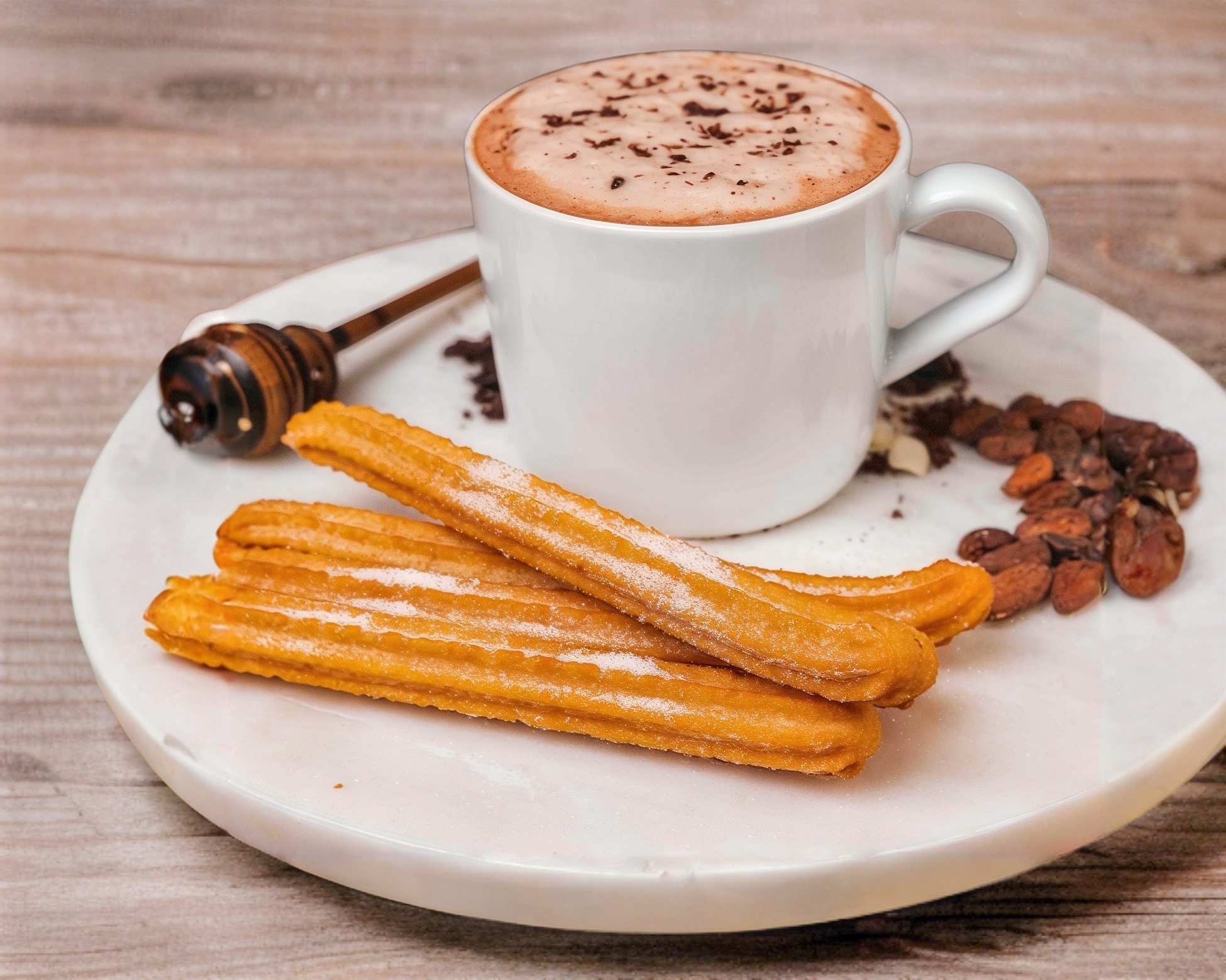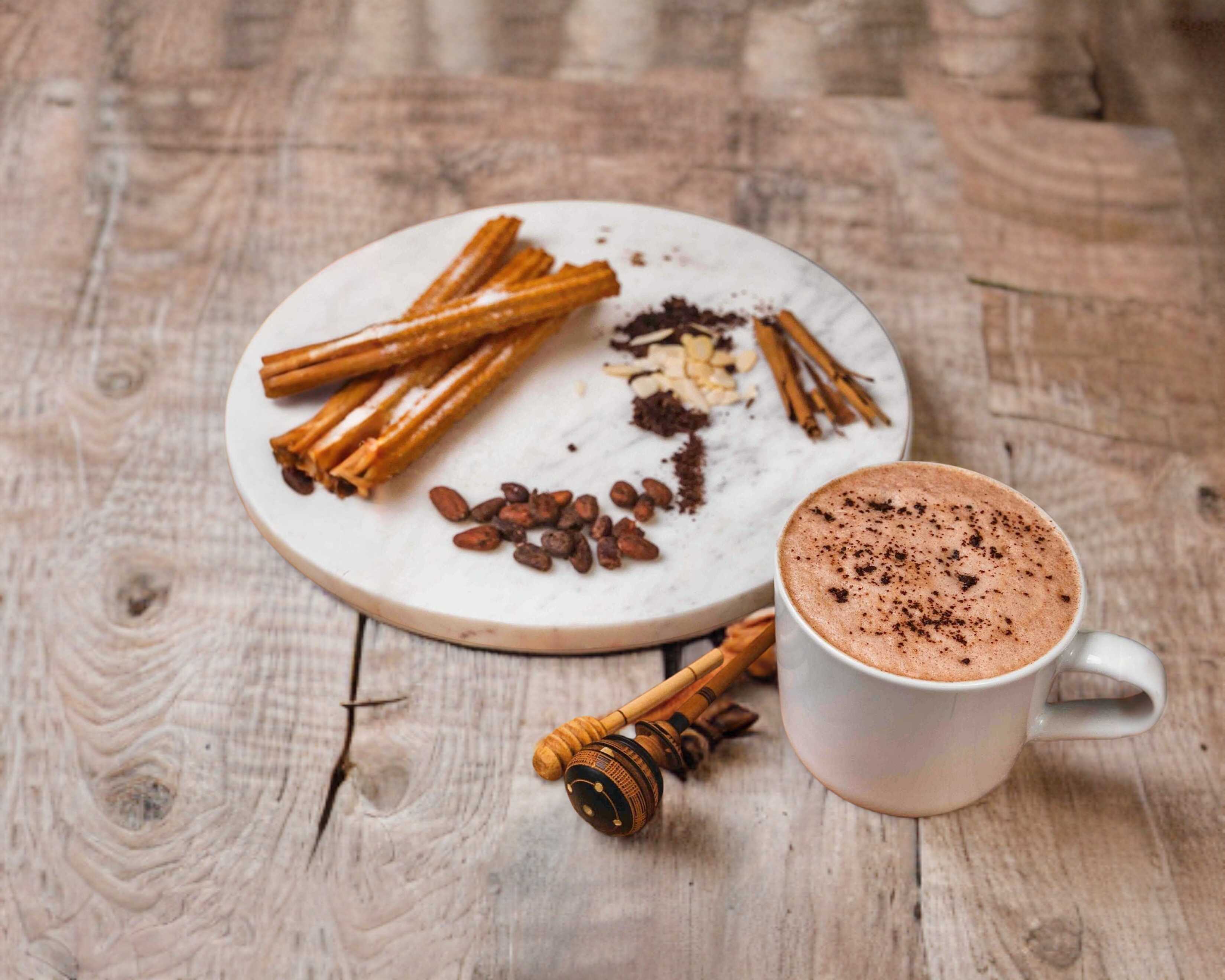 Incluye 4 churros tradicionales + 1 chocolate Oaxaca espumoso 8oz
