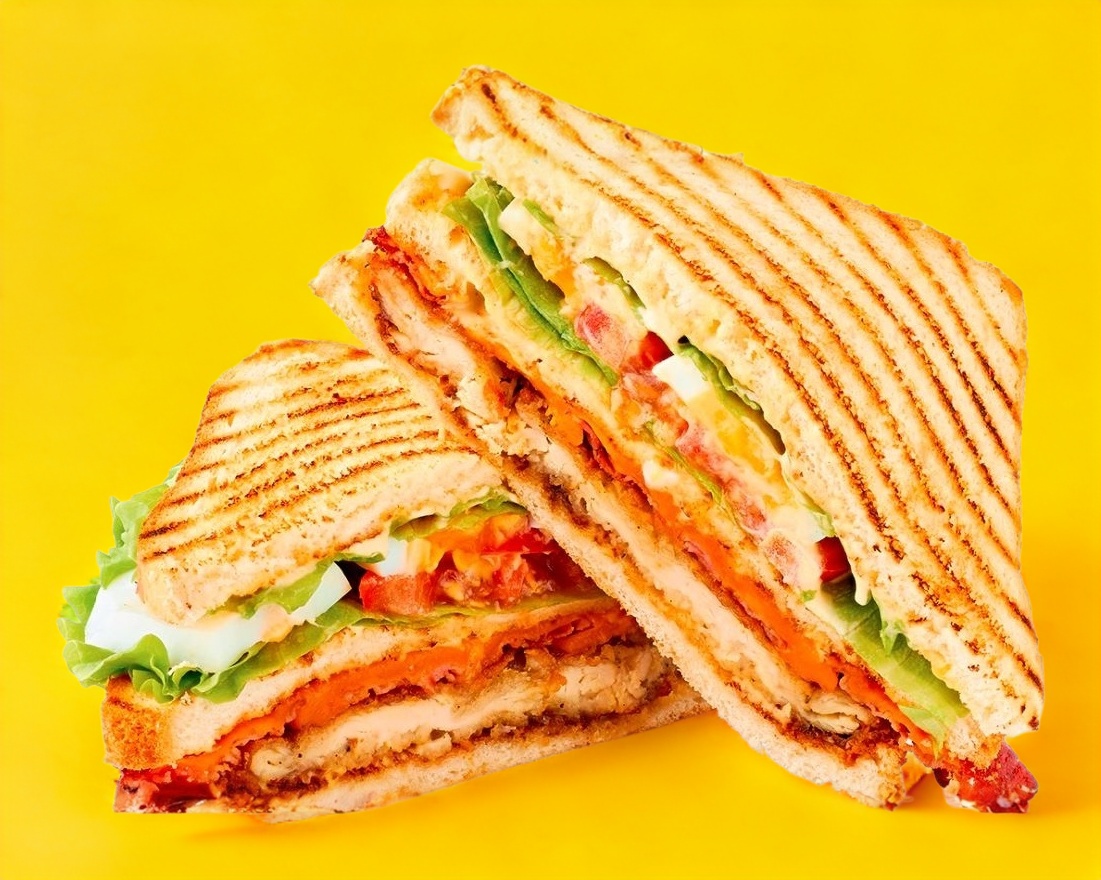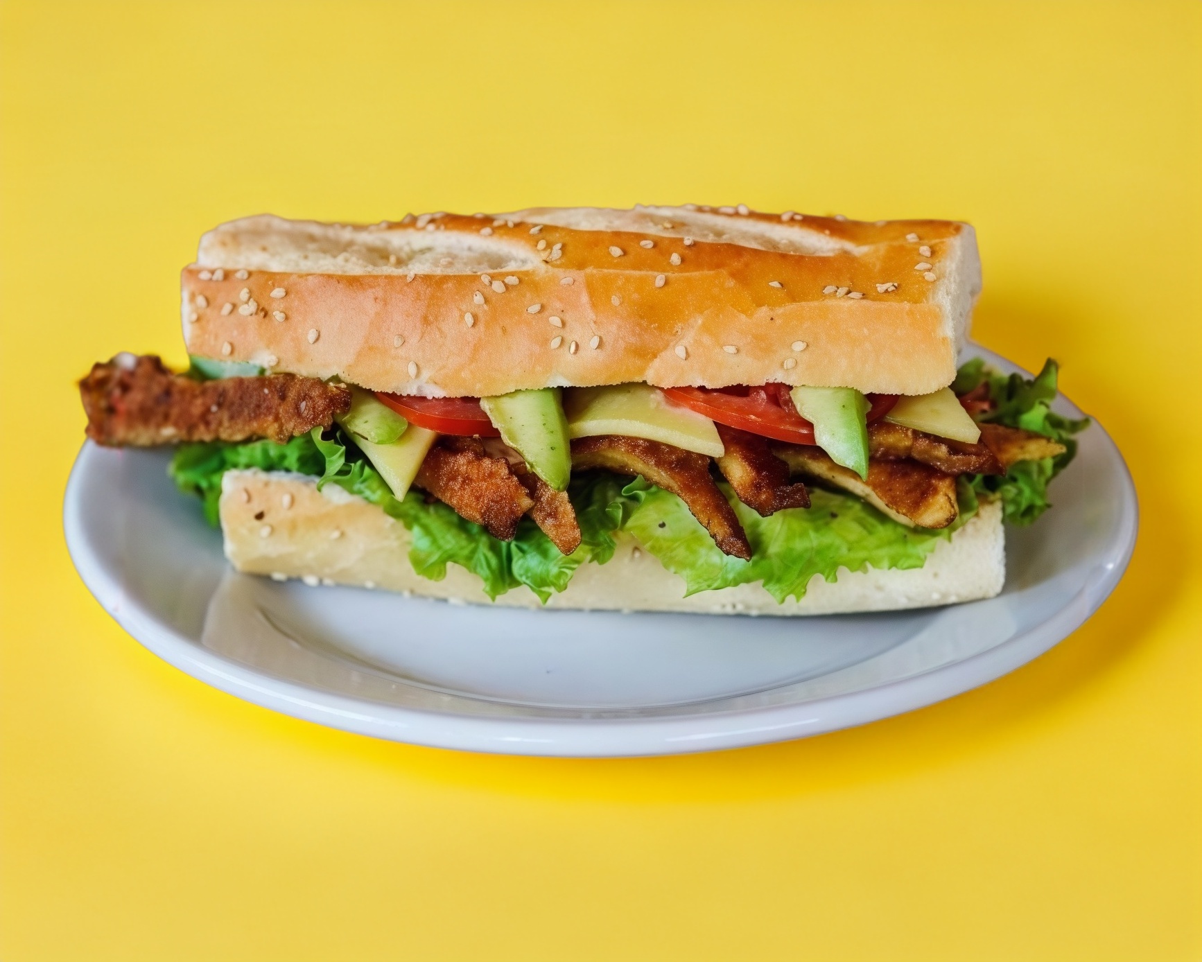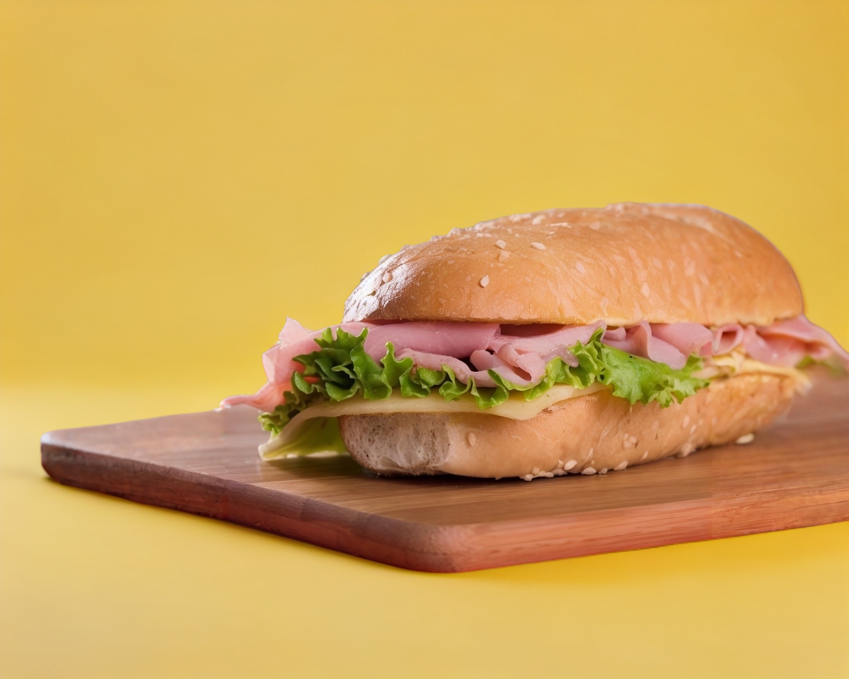 Sándwich de jamón con queso acompañado de papas a la francesa.