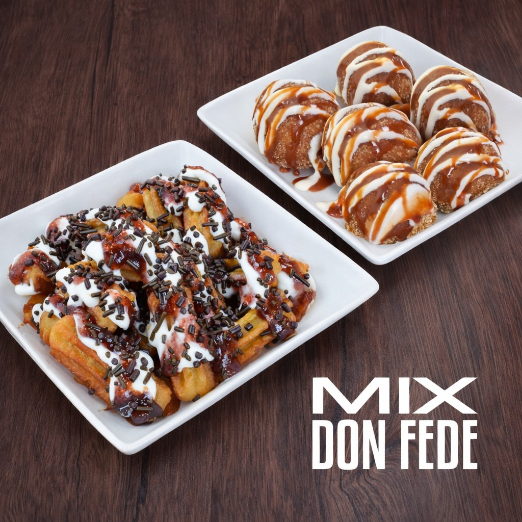 Orden de Mini Churros y Orden de bolitas Bañadas de dos Sabores y un topping cada una