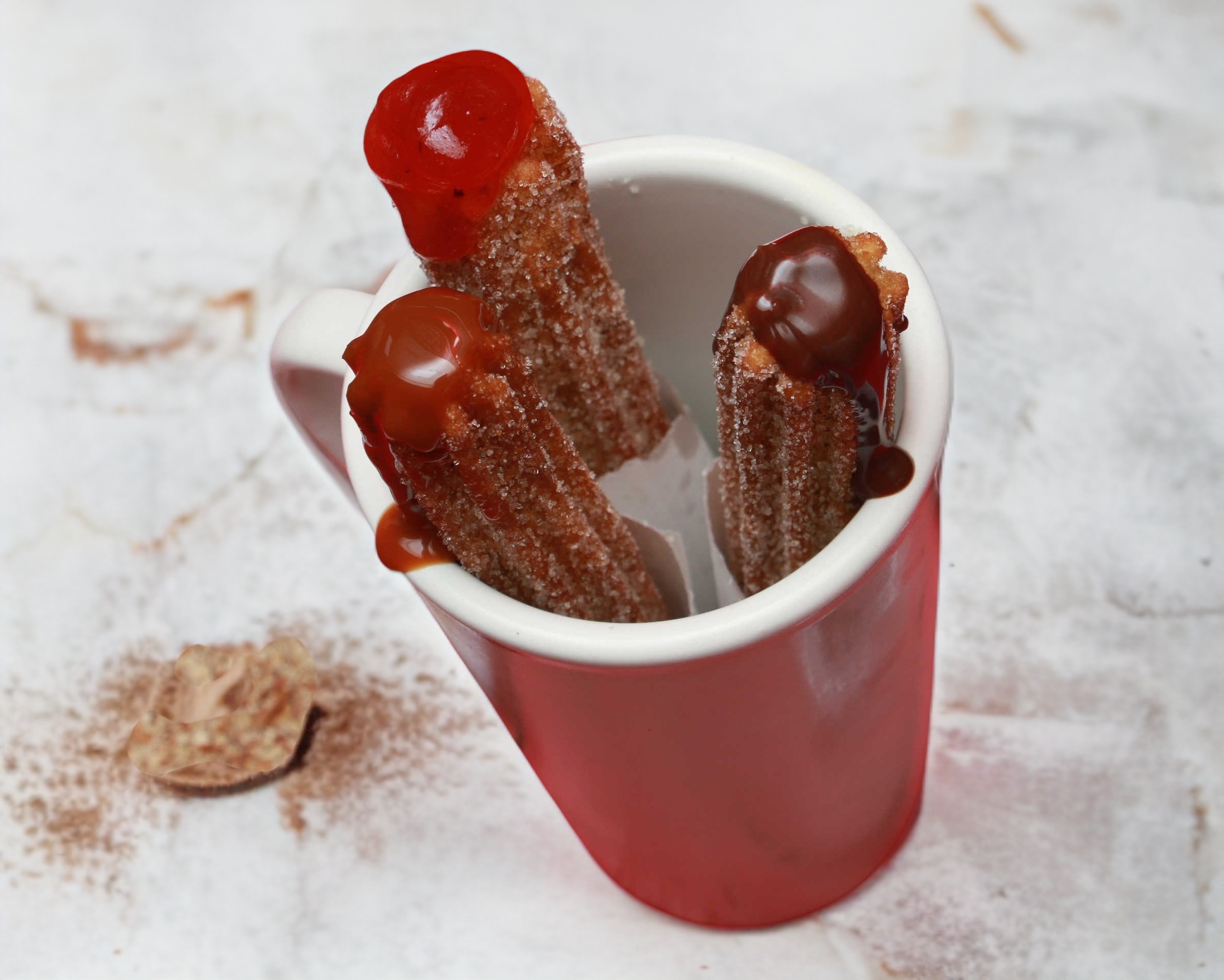 Churro cubierto de chocolate solido, relleno de tu sabor favorito.