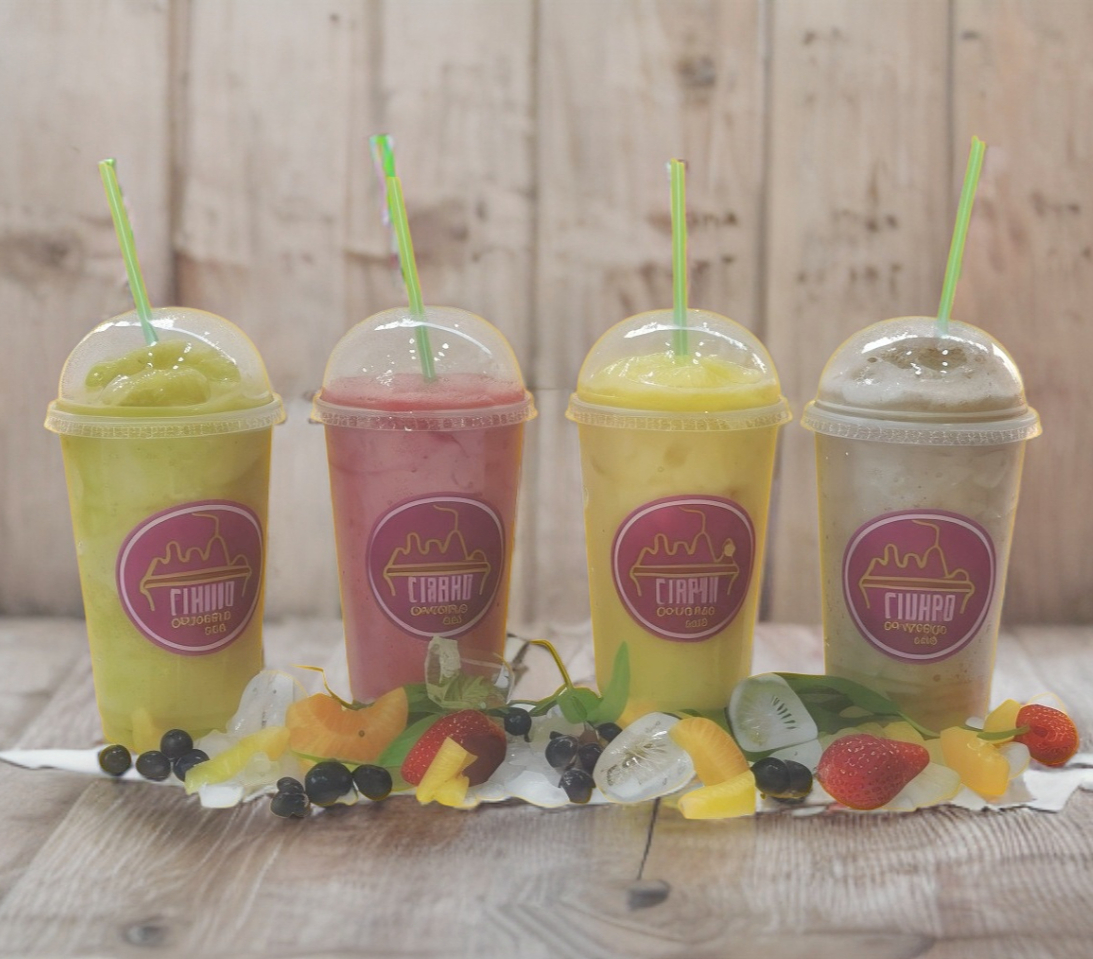 16 oz. Limón, miel, manzana, espinaca, matcha y leche de soya.
