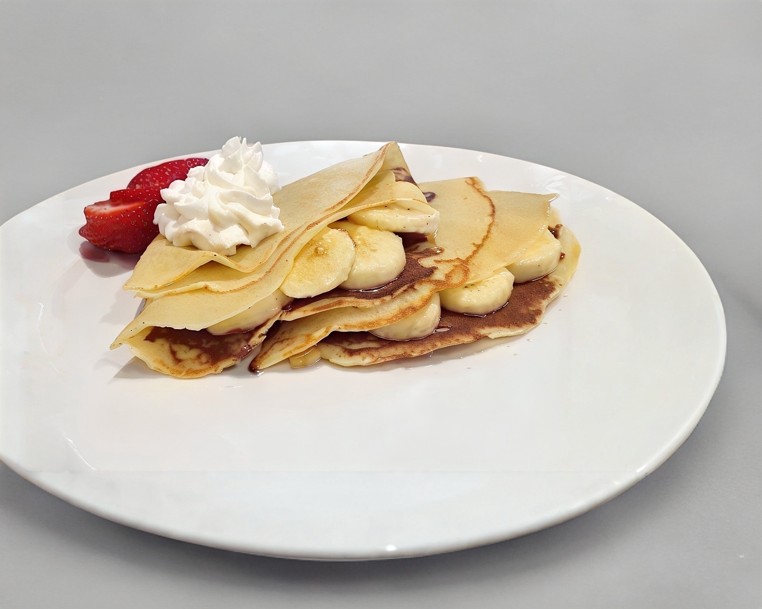 Crepa Premium Especial de la Casa con fresa natural, plátano y crema batida.