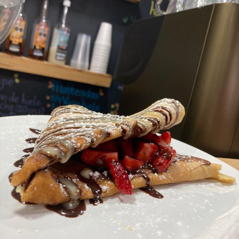 Fresa, manzana ,plátano, uva, zarzamora y queso philadelphia.