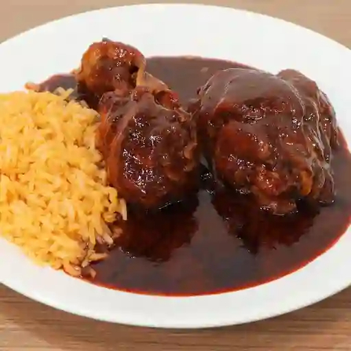 Te incluye: sopa, arroz, frijoles, pollo con mole, agua y gelatina.