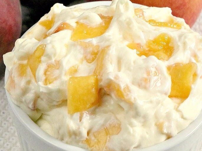 Duraznos en almíbar bañados en una mezcla especial con crema, un postre delicioso que se convertirá en tu favorito.