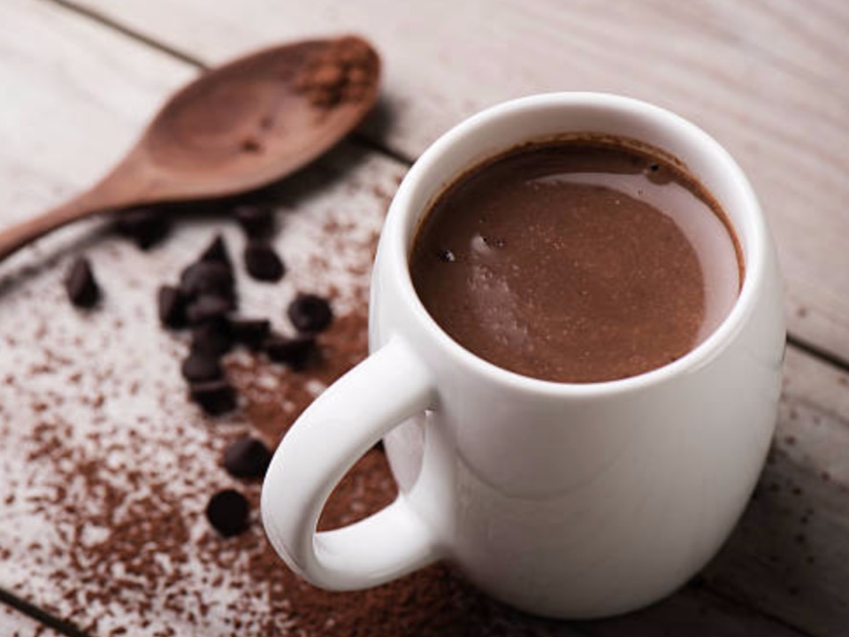 Chocolate con leche entera, calentito a la hora que gustes en un vaso de 12 oz.
