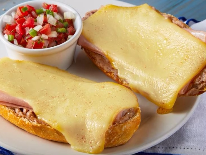 Los clásicos acompañados de jamón, vienen con un bolillo y frijoles refritos con totopos