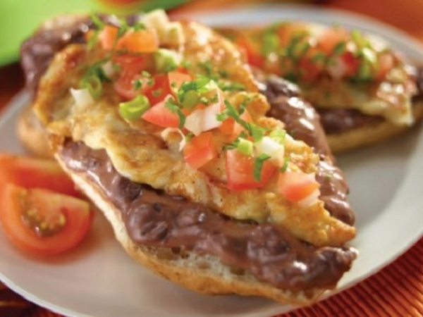 Con salsa roja casera, sencillos o acompañados con huevos fritos ó huevos revueltos ó bistec ó pollo, incluye un bolillo con queso crema y cebolla.