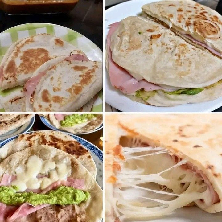 TORTILLA DE ARINA RELLENA DE JAMON QUESO OAXACA AGUACATEY VERDURAS