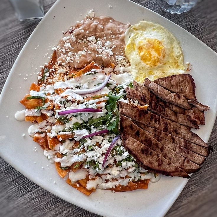 CHILAQUILES ROJOS CON BISTEC