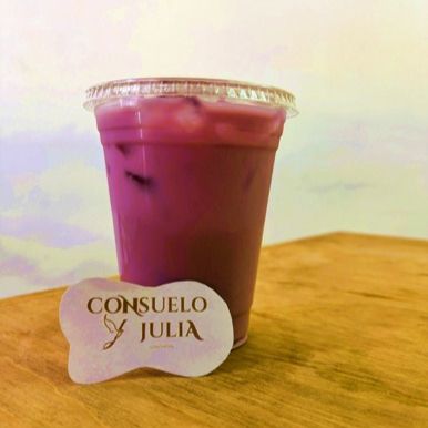 Presentacion 12oz. Bebida dulce y cremosa, con un característico color morado, elaborada a partir de polvo de taro y leche caliente.