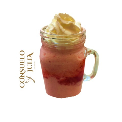Presentación 12 oz, Bebida a base de yogurt, fresas frescas y jarabe .