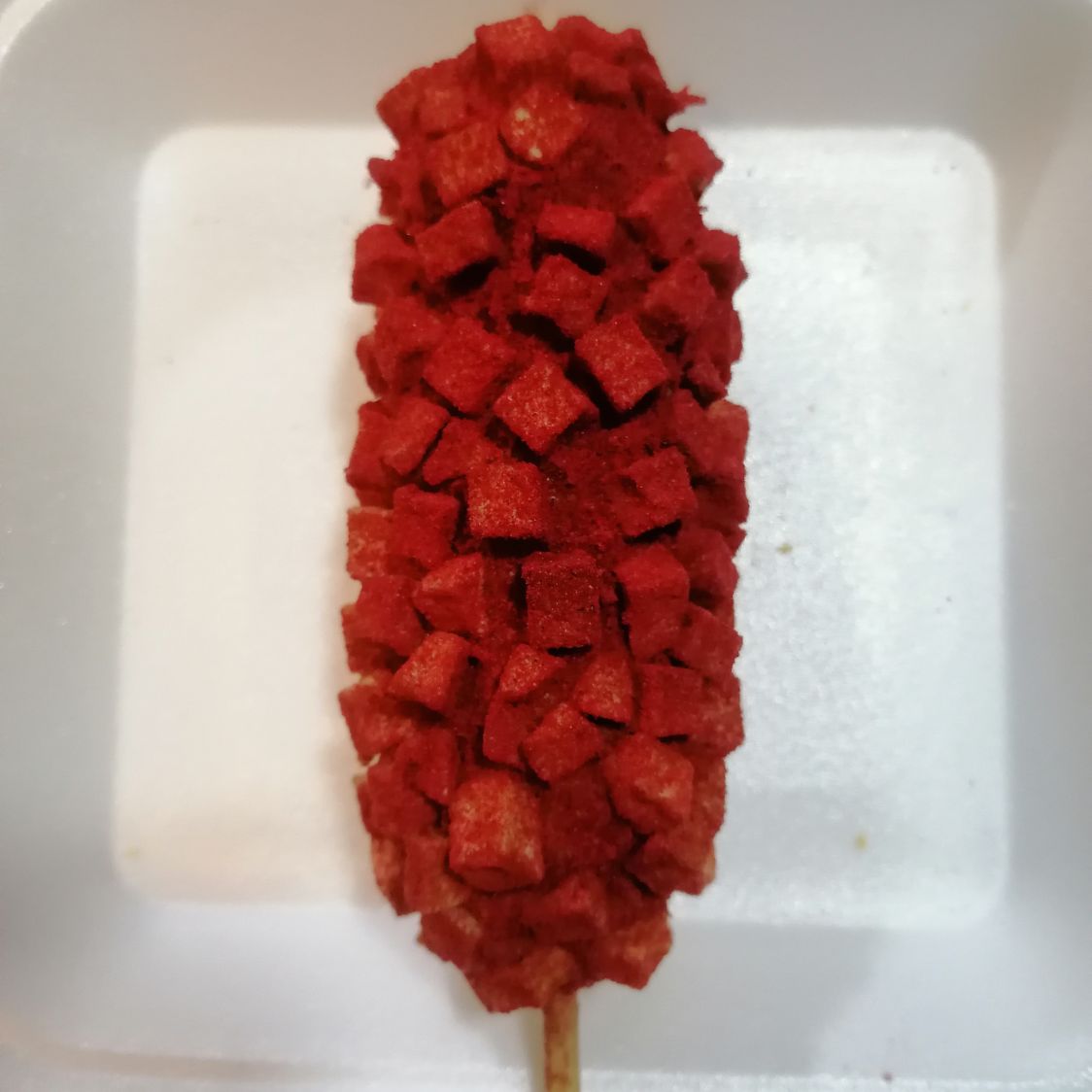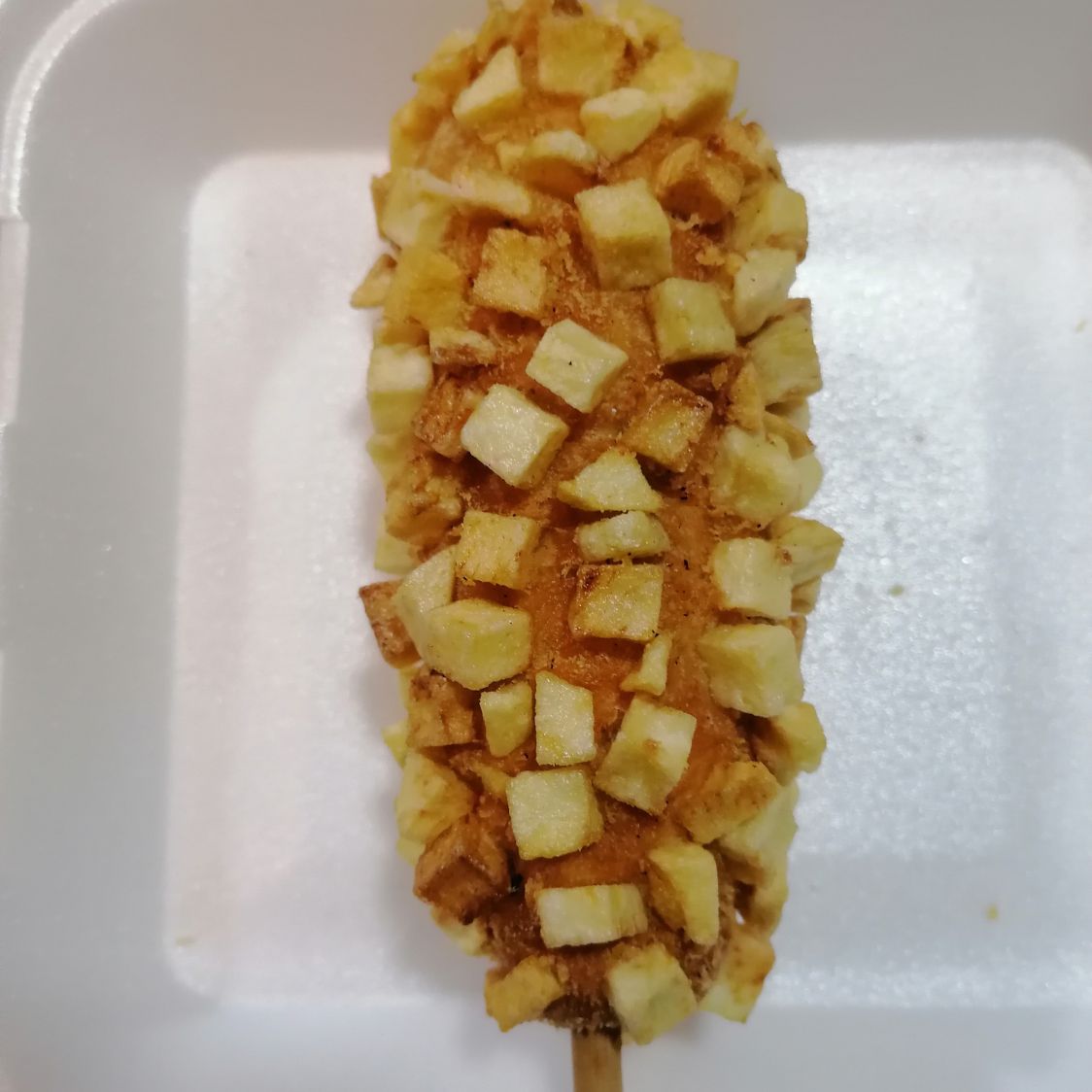Mitad queso mozzarella y salchicha envuelto con queso cheddar cubierta crujiente.