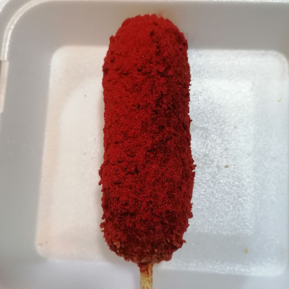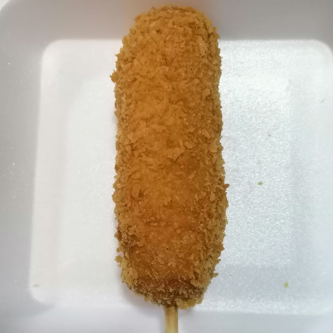 Salchicha envuelta con queso cheddar con cubierta crujiente.