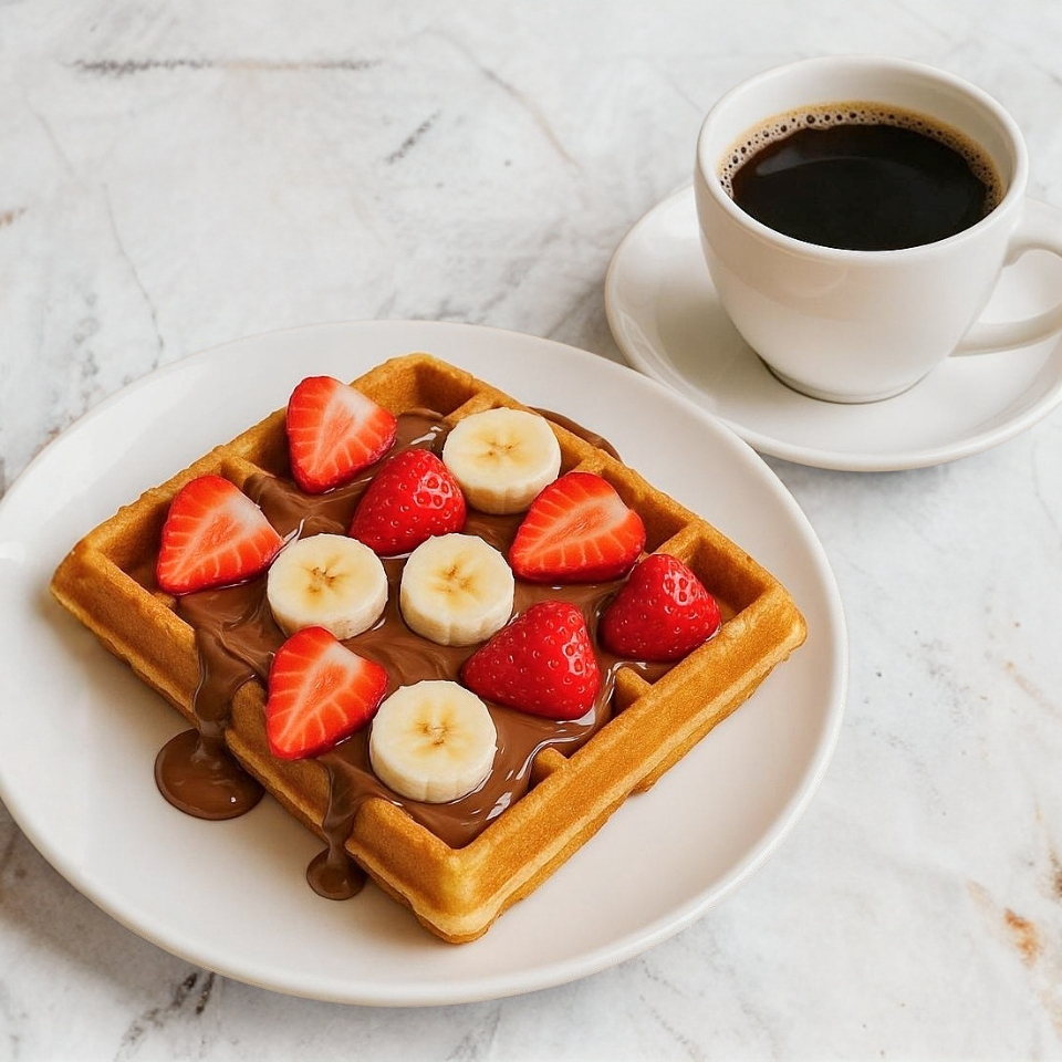 Delicioso Waffle con Nutella Trozos de Fresas y Bananas