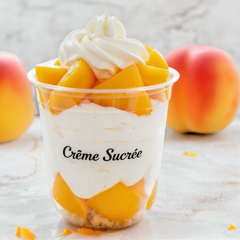 Trozos de Dulce Durazno con Deliciosa Crema Especialidad de la Casa