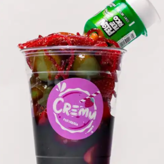 Chamoyada con base de fruta a elegir más un topping premium. Skwincles, picafresa, pulparindo,pelón pelon pelo rico.