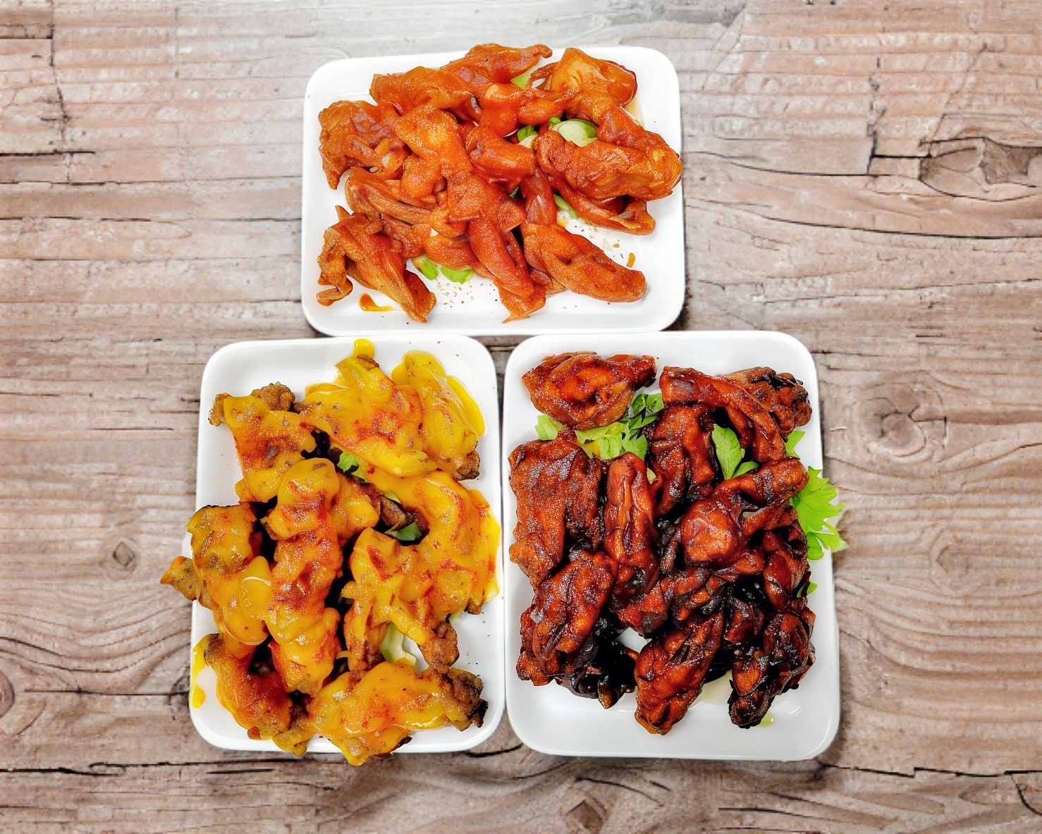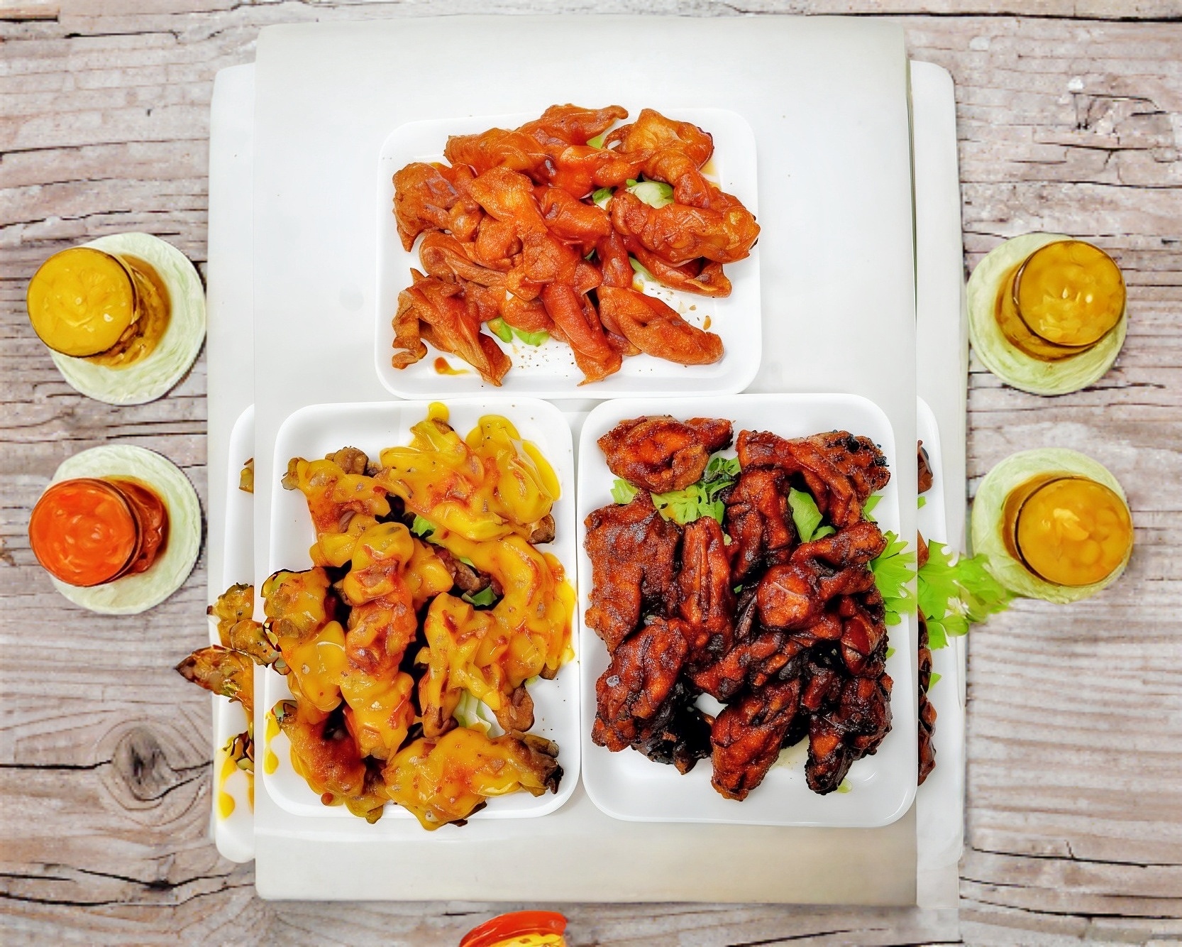 12 Alitas (2 sabores), 2 papas a la francesa y 1 refresco de 2 litros.
