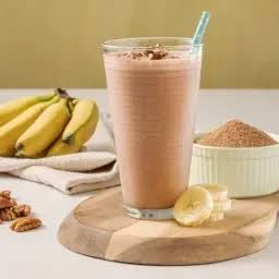 Delicioso Frappé con plátano y chocolate, decorado con crema batida y chispas de oreo.