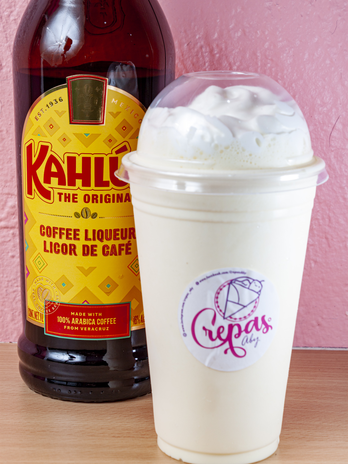 Crepa de Nutella, chocolate de kahlùa y licor de kahlùa con topping y espolvoreado a tu elección.