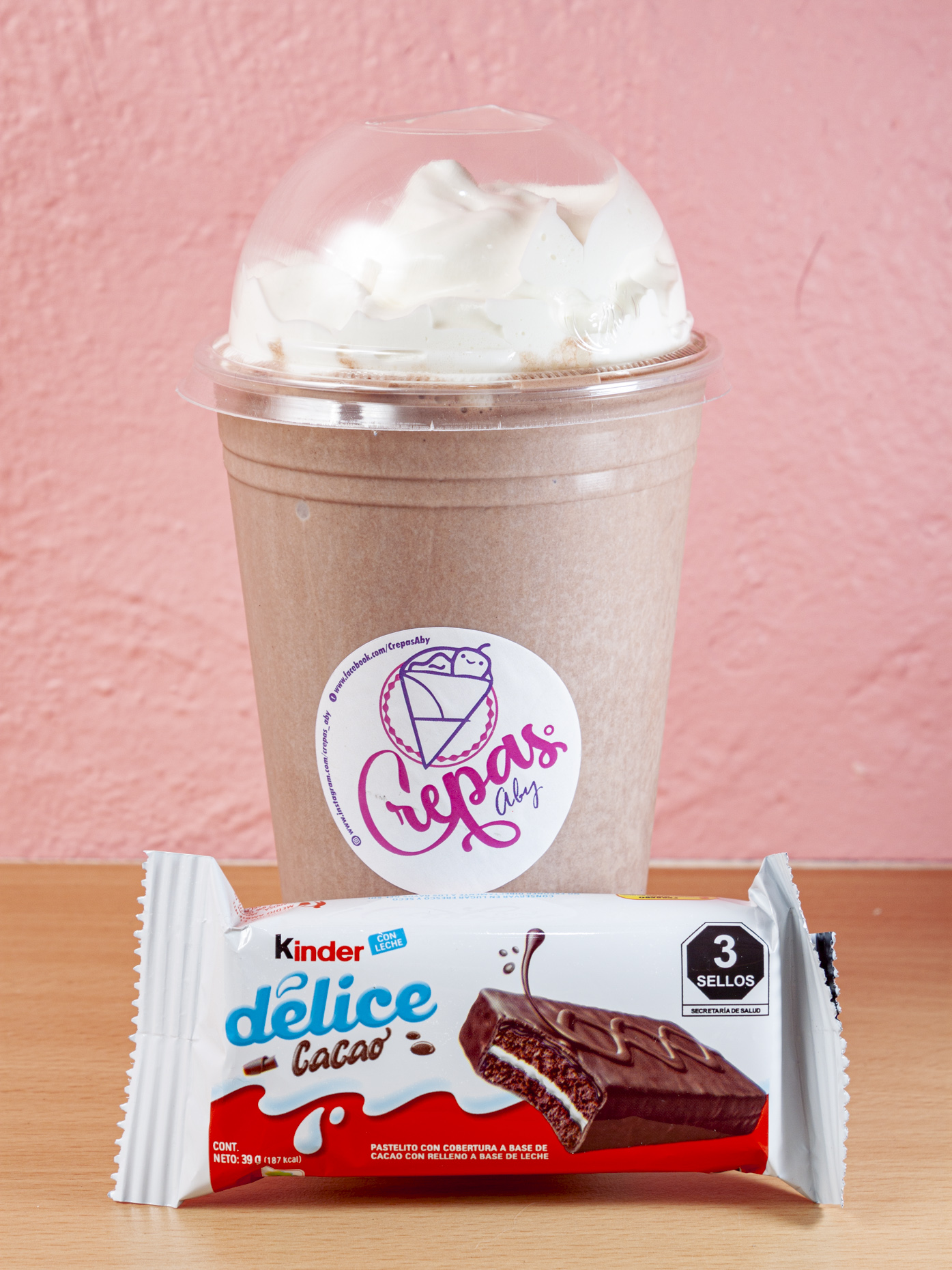 Crepa de Nutella, pastelito de Kinder Delice y plátano con topping y espolvoreado a tu elección.