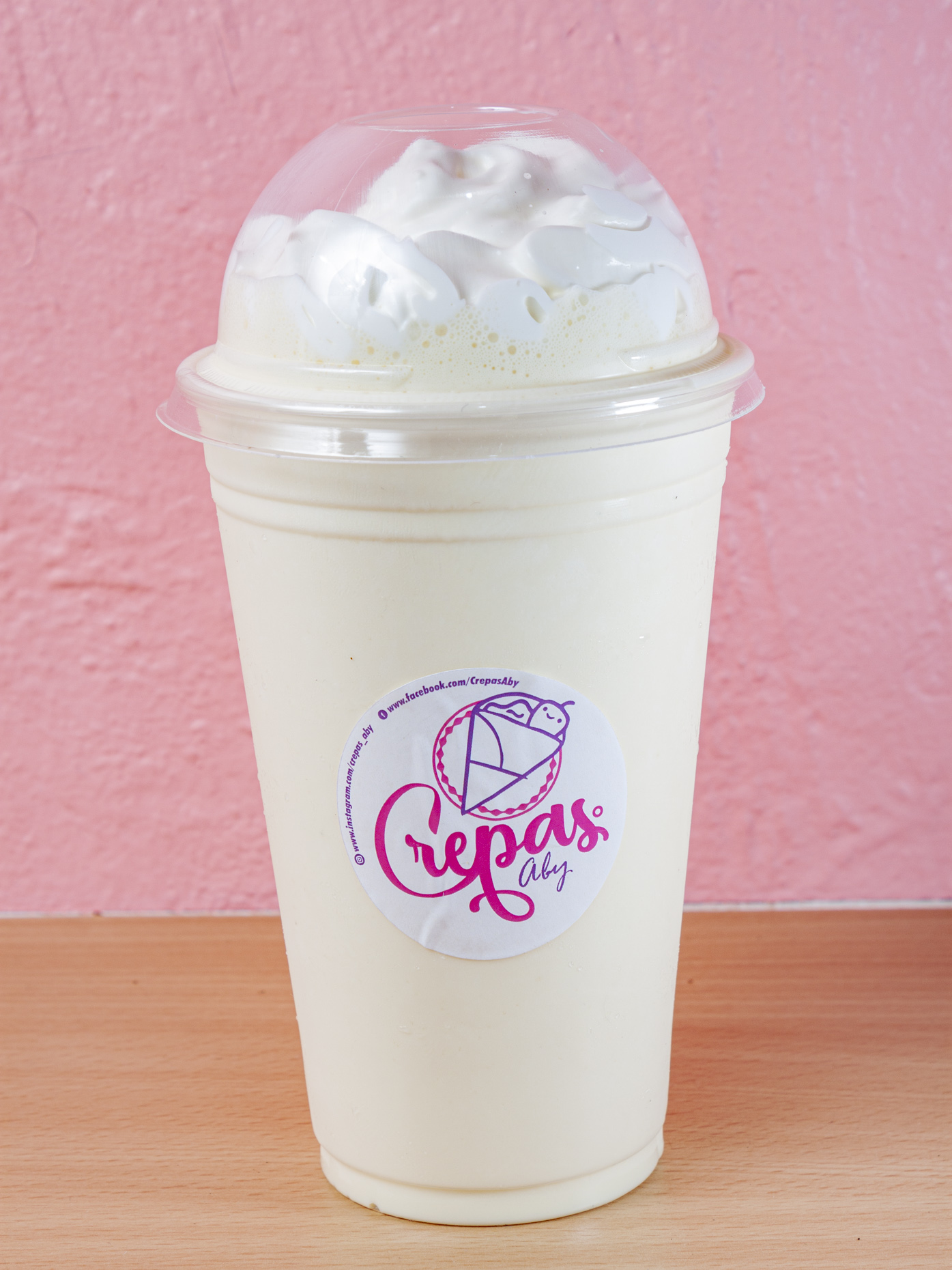 Crepa de queso Philadelphia y durazno en almíbar con topping y espolvoreado a tu elección.