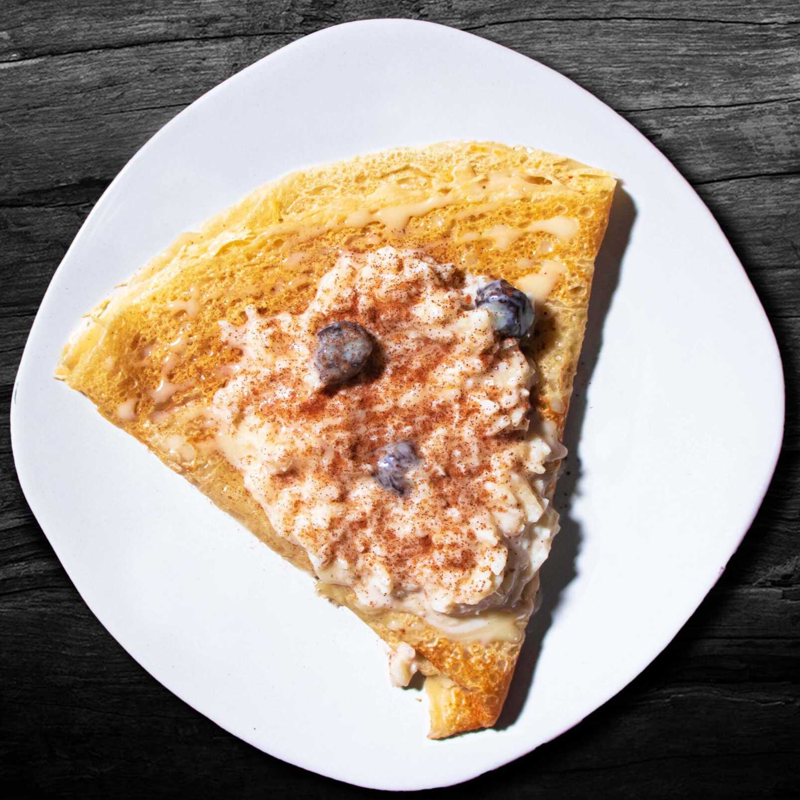 Tradicional arroz hecho en casa con pasitas y variedad de leches.